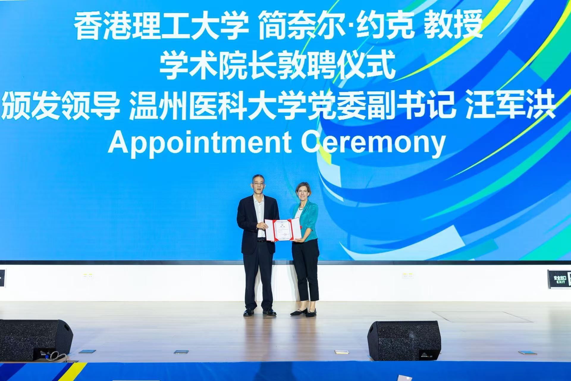 At the grand appointment ceremony during the opening ceremony, Wang Junhong, Deputy Party Secretary of the university, presented the appointment certificate to Professor Janelle Yorke, Dean of the School of Nursing at The Hong Kong Polytechnic University, officially appointing her as the Academic Dean and Visiting Professor of the School of Nursing at Wenzhou Medical University.