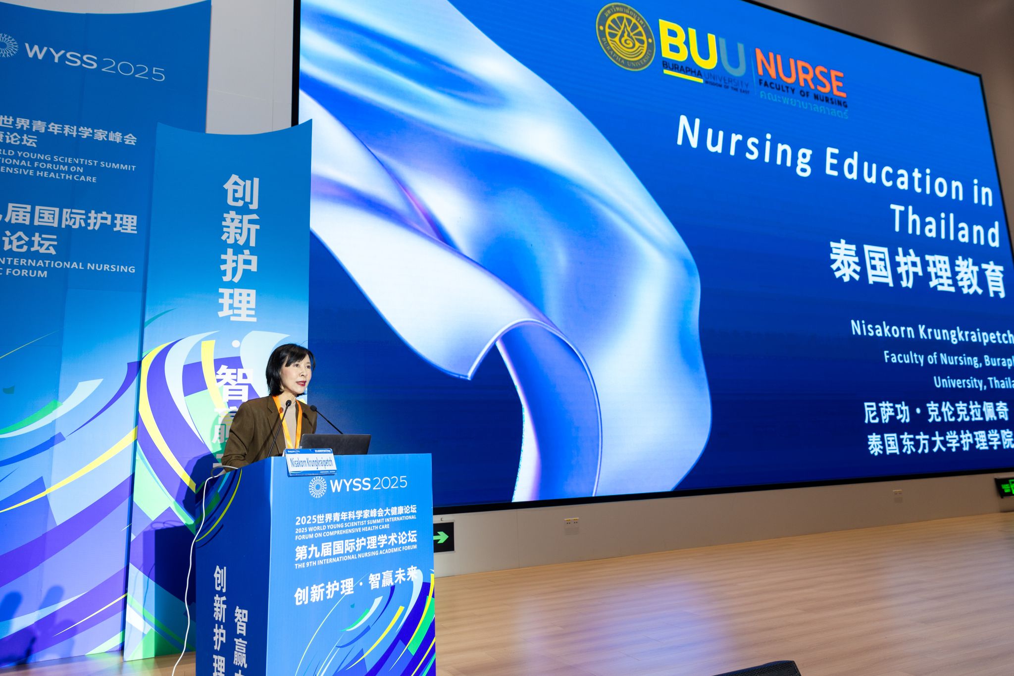 Professor Nisakorn Krungkraipetch, Vice Dean for Administration and Organizational Management, and Professor Trakulwong Leucha, Vice Dean for Information Technology and Innovation, from the School of Nursing at Burapha University in Thailand, shared Thailand's nursing education experience from the perspectives of system construction and technological innovation respectively. In her report "Nursing Education in Thailand", Professor Nisakorn Krungkraipetch systematically introduced the background, structural system, medical insurance policies, practice models, and development challenges of nursing education in Thailand, providing important references for deepening international exchanges and cooperation. Professor Trakulwong Leucha, in his report "Nursing Education Transformation Driven by Simulated Scenarios and AI-Enhanced Learning", focused on digital transformation and shared the practical achievements of simulated scenario teaching and AI technology in innovating nursing education, injecting new wisdom into global nursing education.