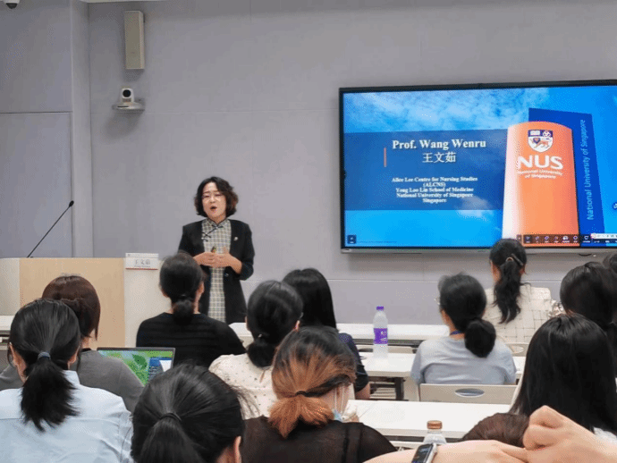 Taking "Singapore Community Intervention Programs for Aging Promotion" as the starting point, Professor Wang delivered a keynote speech focusing on Singapore’s healthcare system, nurse training system, senior care programs and nursing scientific research. She pointed out that due to the severe aging population and chronic disease situation in Singapore, the government strongly supports a home-centered health system, develops a patient-centered integrated medical-nursing-care model, expands volunteer teams, and alleviates the burden on medical staff. Meanwhile, Professor Wang provided a detailed introduction to doctoral education applications at NUS, covering aspects such as faculty strength, admission requirements, program costs and graduation criteria.