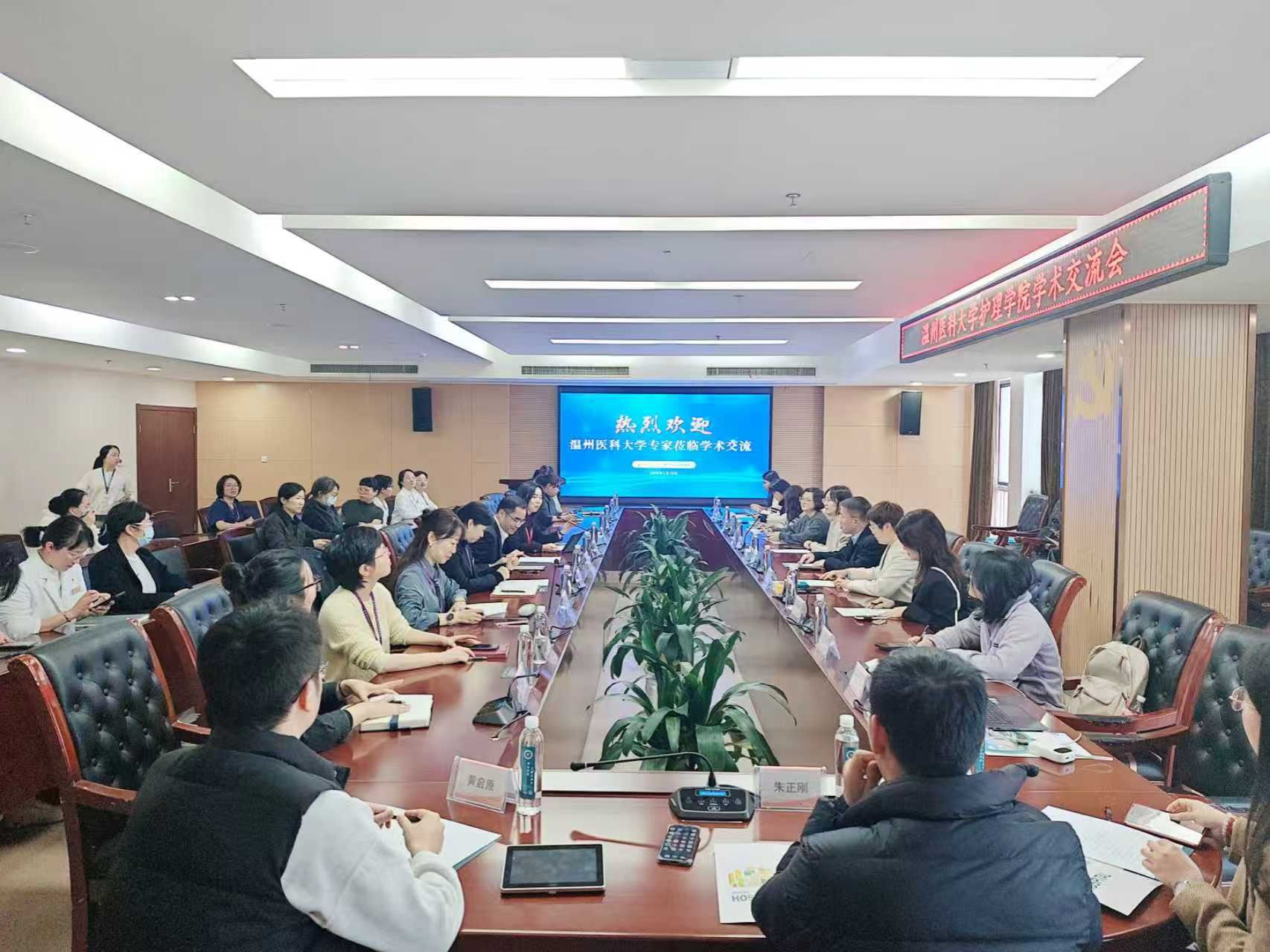 To deepen medical-university collaborative innovation, break the bottlenecks in clinical nursing research and advance the high-quality development of the nursing discipline of our university, on January 19, 2026, a 12-member delegation led by Cai Fuman, Dean of the Nursing College of Wenzhou Medical University, and Huang Xiaoqiong, Vice Dean, visited Wenzhou People's Hospital upon invitation for nursing research cooperation and exchanges. The delegation consisted of core academic backbones including PhDs and postdoctoral fellows engaged in research fields such as AI in healthcare, basic experiments and clinical nursing. Ruan Guomo, Party Secretary of Wenzhou People's Hospital, Zhang Yi, Vice Dean, Wang Haihong, Director of the Nursing Department, and 26 members of the hospital’s Nursing Science and Innovation Group attended the exchange event, which was presided over by Vice Dean Zhang Yi.